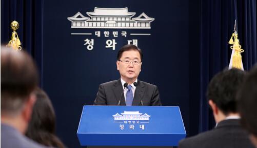 特朗普口中朝鲜“真诚”的表态,是指3月5日韩国特使团在平壤与朝方举行的会谈。会谈后,率团的青瓦台国家安全室室长郑义溶在新闻发布会上表示,朝韩决定于4月底在板门店举行第三次朝韩首脑会晤。据韩联社报道,郑义溶表示,朝方表明了实现半岛无核化的意愿,并提到若对朝军事威胁消除、朝鲜的体制安全获保障,朝鲜就没有理由拥核。朝方还有意与美国开诚布公地为无核化磋商及恢复朝美关系进行对话。