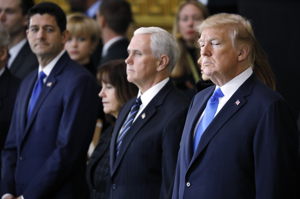 美國眾議長瑞安(左一)對特朗普針對進口鋼鐵和鋁產品加徵關稅的計劃表示擔憂,並呼籲其放棄此計劃。 資料圖片