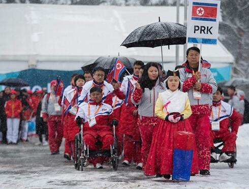 平昌冬残奥会3月9日至18日举行。3月7日,平昌冬残奥会朝鲜代表团抵达韩国,8日上午,朝鲜代表团在平昌运动员村举行入村仪式。这是朝鲜第一次参加冬残奥会,代表团将于15日返回朝鲜。