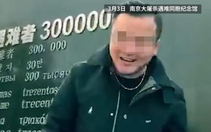 3月8日,在南京大屠杀遇难同胞纪念馆前拍摄发泄视频者孟某被南京警方处以处行政拘留8天,当天,孟某在拘留所忏悔并道歉。