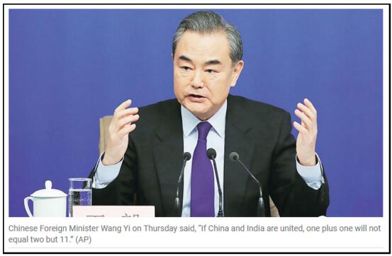 王毅外长的一系列妙语已在印度传播(Indian Express网站截图)
