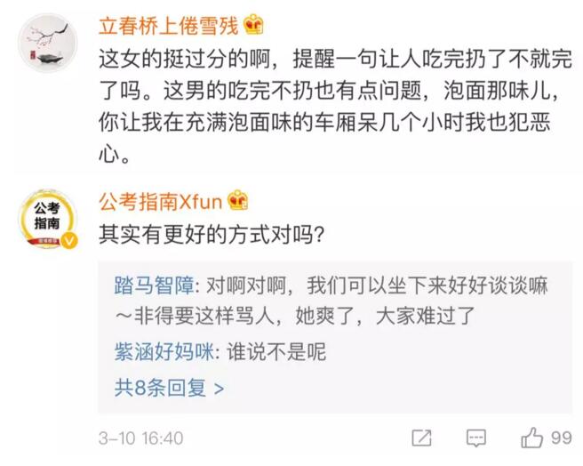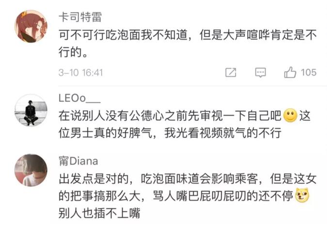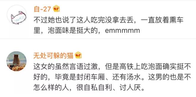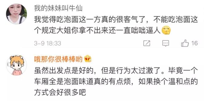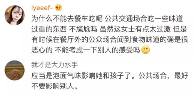 也有人指出,在高铁上吃泡面挺不好的,味道太大。