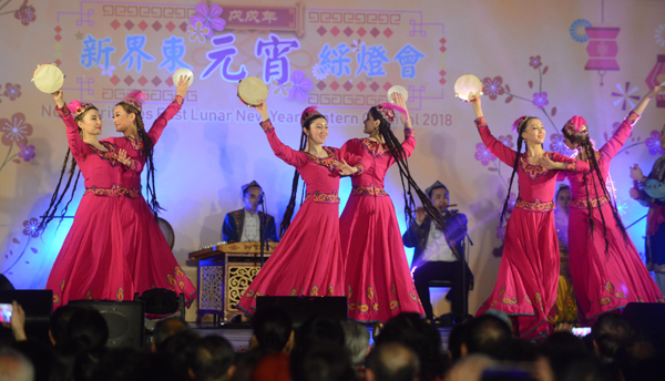 新疆藝術團大跳歌舞及耍雜技。
