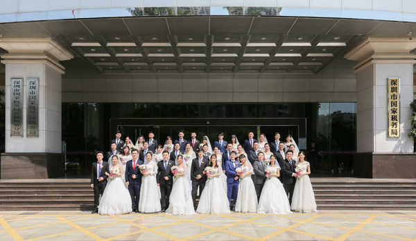 【香港商报网讯】记者黄凤鸣报道:3月11日,深圳市国家税务局“税月见证 幸福传承”为21对新人举办了集体婚礼。集体婚礼活动简朴热烈、温馨庄重,深圳市妇女联合会主席马宏和深圳市直机关工委群团部部长兼妇工委主任刘芳出席本次活动为新人送上祝福,还有近230名来自市国税基层单位的代表和新人夫妇亲友团以及近2300名观看在线网络直播的观众共同见证本次婚礼。