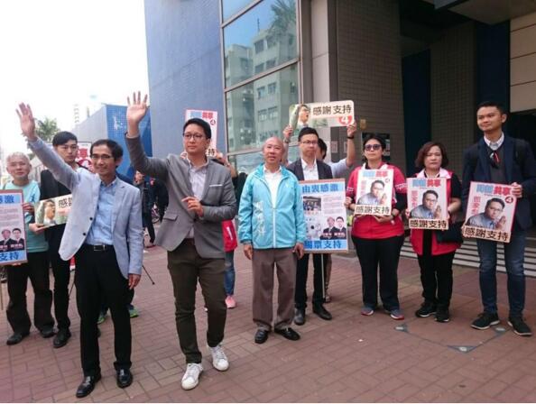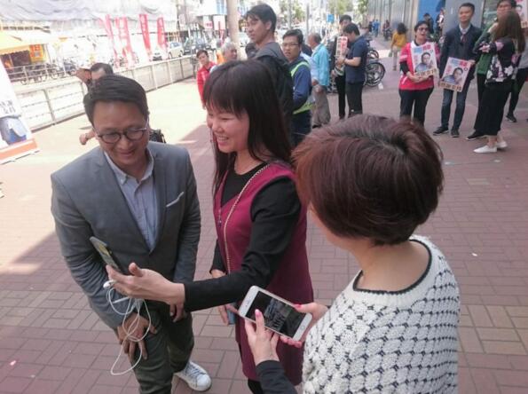 鄧家彪與助選團隊在大圍站謝票。圖:橙新聞