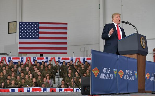 特朗普对在场数千名海军陆战队员说:“我代表美国人民向你们传达一个重要信息,那就是我们支持你们,我们爱你们,而且我们将永远在你们身后。”