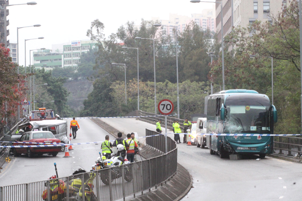 昨日中午12時許,退休警駕駛一輛由朋友處借來的客貨車,沿尖沙咀漆咸道南往沙田方向行駛,當途至近理工大學對開天橋時,突然失控,冲過路中石壆,至對面線往尖沙咀方向行車線,猛撞向一輛駛至的粵港旅游巴,再反彈回原來往沙田方向的行車線,再與另一輛的士迎頭相撞,2車嚴重損毀,泵把、后備胎和玻璃窗碎片四散,部分碎片更擊中一輛同方向行駛的私家車,退休警重傷昏迷,被困車內,消防與救護員接報趕到將他救出,送院經搶救后證實不治,的士司機事后亦需送院。