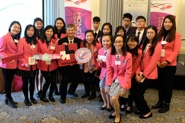 羅致光(左六)與香港婦協出席第62屆聯合國婦女地位委員會會議的代表團見面。