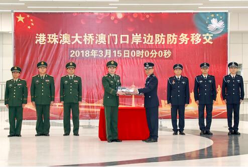澳門特區海關及廣東省邊防部門3月15日零時在港珠澳大橋澳門口岸管理區舉行交付儀式
