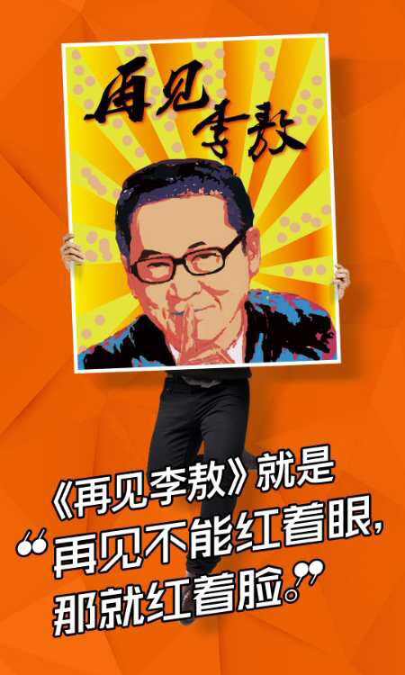 去年6月14日曾發微博稱,《再見李敖》是一個再見不能紅著眼,那就紅著臉的節目。 新浪微博