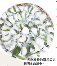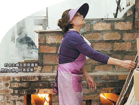 袁蘭芳(左)與鄭文雅(中)高興地將一屜包好的茶果放入鍋中蒸。