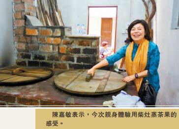 陳嘉敏則稱,這次觀摩,是希望下次帶領部分大學生參觀茶果製作,希望學生用自己的方式,包括製作照片、繪畫及戲劇表達茶果製作過程,而原定開班,讓有興趣的學員由頭參與整個製作過程,但現時看到製作工序時間長,故將前期製作以視像記錄下來播放,學員們只參與包餡的工序,但仍要解決柴灶蒸茶果問題,欲開班授課仍存有困難。