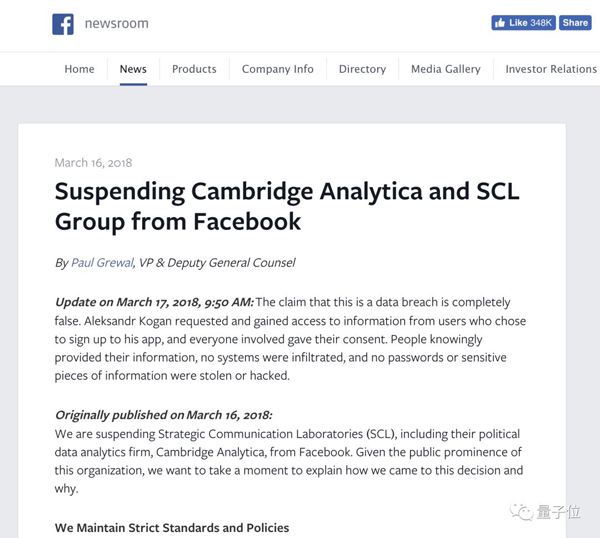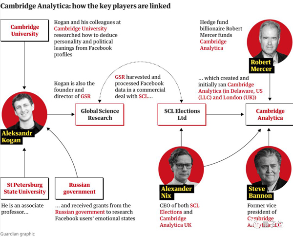 昨天(3月17日),Facebook宣布暂时封杀两家裙带机构。一个叫Strategic Communication Laboratories(SCL),主要为全球官方机构提供数据分析和战略决策。