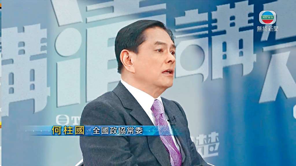 何柱國接受無線電視節目《講清講楚》訪問時表示,中央官員以往關注「港獨」,現時更注重本地青年前途及樓價過高等問題。他舉例指,由港人創辦的順豐速運成功的原因,在於「走出去」,打進內地十多億人的大市場,他期望林鄭盡力為港人爭取國民待遇,方便港人往內地發展,讓港人能夠「走出去」,一旦成功,青年將會海闊天空。