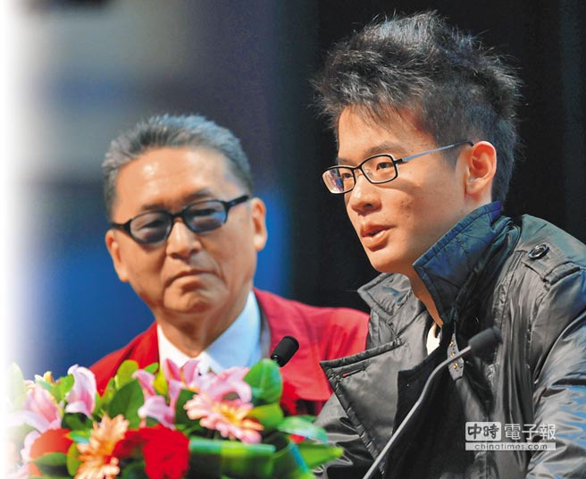 李敖与儿子李戡在厦门大学登台演讲。图自台媒