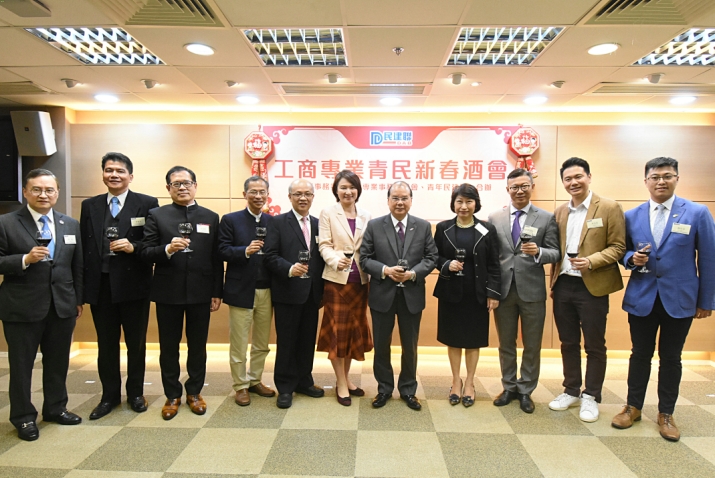 民建聯工商專業青民新春酒會昨日舉行,一眾賓主祝酒同賀新春。 記者 馮瀚文攝