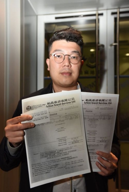 陳張樂怡指,昨有市民無法聯絡上栢茵假期,拿着「發票」到旅議會求助,昨接獲的六宗個案,不少是購買類似「期票」,即沒有指明出發日期及地點的機票、酒店、或機票加酒店套票,「例如六月底前選擇出發到東京、大阪或福岡的機票,酒店同樣未有訂明;顧客落實出發日期後,旅行社才訂機票及酒店。」有個案涉及十一萬元,另一宗最大金額二十萬元。