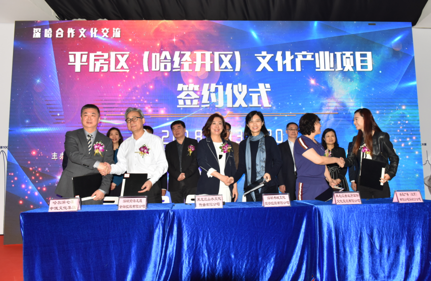 活动中,还进行了哈尔滨市平房区(哈经开区)政府与深圳中芬设计园、黑龙江动漫产业(平房)发展基地与深圳杰思乐团工作室有限公司、黑龙江山水文化传播有限公司与深圳书城文化投资控股有限公司、黑龙江省北方国际文化交流有限公司与睿晟广告深圳分公司、哈尔滨七集中俄文化集团与深圳前海龙晟金融控股有限公司分别签约,签约额近亿元,这是深哈合作以来,平房区(哈经开区)与深圳市文化企业首次就文化产业项目进行签约。刘兴阁还在采访中表示:“作为深哈合作以来,哈尔滨派来深圳的第一批挂职干部,我本人就是深哈合作的亲历者和见证者,就是平房区和罗湖区友好交流、合作共建的亲历者和见证者。先有罗湖区,后有深圳市,罗湖是深圳的原点。哈尔滨是国家老工业基地城市,平房区、哈经开区是哈尔滨工业的心脏、发展的引擎。两个区在双方的城市发展历程中都作出过卓越贡献。今天,我们跨越中国南北大地的万里距离携手同行,必将共同创造更加美好灿烂的未来!”