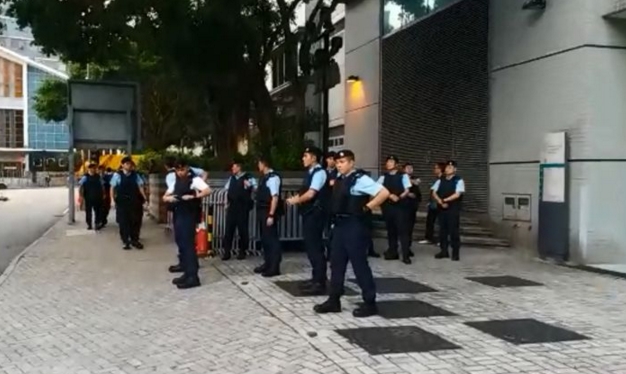 警方依舊實行高度戒備,今早在九龍城裁判法院外,數十名藍帽子在庭外駐守,警員穿上防彈衣及架起鐵馬,並拉起封鎖線,防止意外發生。不少便衣警員在附近巡邏。法庭大樓外亦有幾名警員駐守。