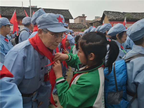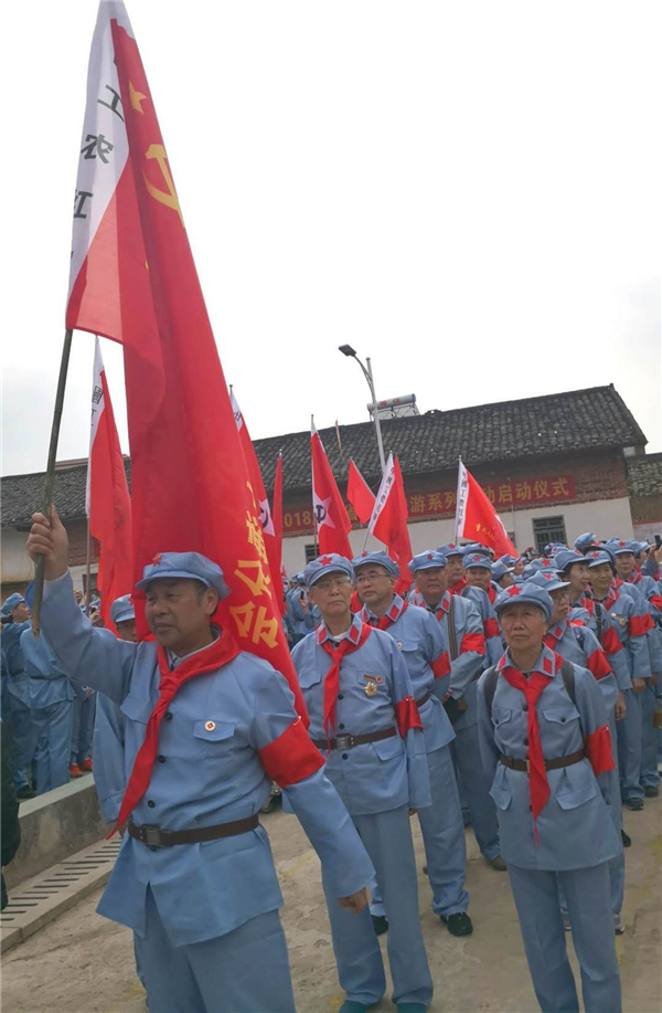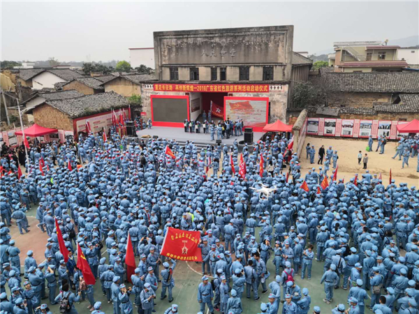 【香港商报网讯】记者李芳、卢涛报道: "我宣誓:永远铭记长征精神,不忘初心,牢记使命,继承先烈遗志,争做红色传人,砥砺前行……"3月24日上午,南雄市油山镇上朔村人民会堂外,整齐划一、铿锵有力的宣誓声响彻云霄。由广东省旅游局、韶关市人民政府共同主办的"重走长征路·再创新辉煌--2018广东省红色旅游系列活动启动仪式"在南雄市革命老区油山镇隆重举行。南雄籍开国少将彭显伦后人和原南雄县委书记、烈士彭显模同志后人、老游击队战士代表、徒步爱好者等2300多人参加了活动。