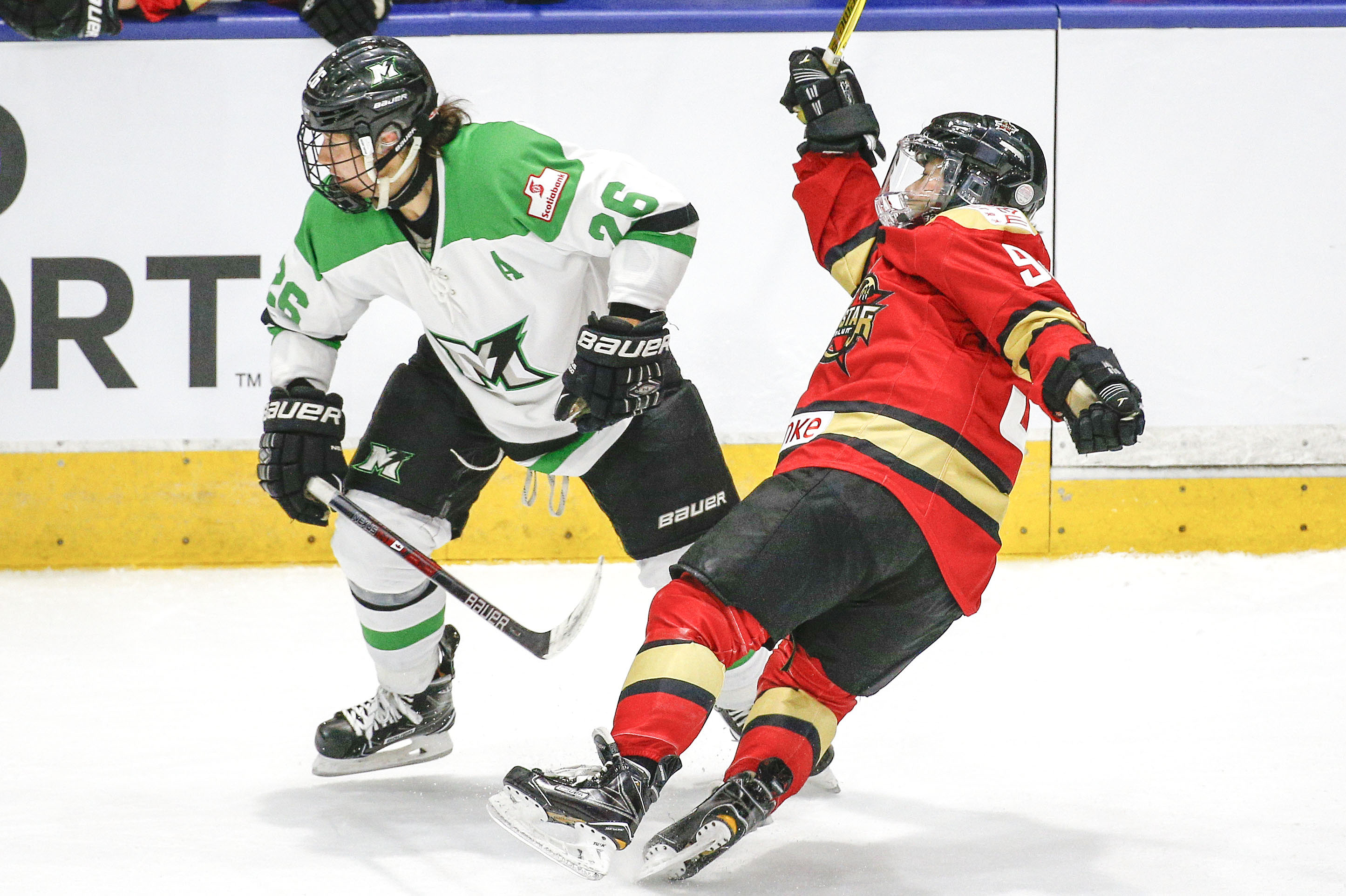 然而当加时赛进入2分49秒,万锦迅雷队2名球员形成2打1,7号斯塔西晃过莱缇将球送入小门,使比赛瞬间终结,昆仑鸿星也被这一进球绝杀。最终在2017/2018赛季CWHL(加拿大女子冰球职业联赛)克拉克森杯总决赛中,深圳昆仑鸿星以1-2加时憾负万锦迅雷队。