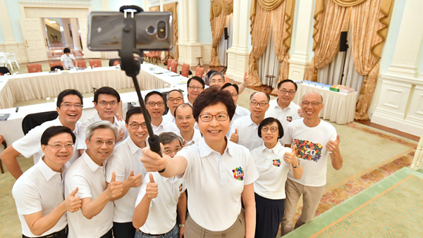 【香港商報网訊】記者林駿強、鄺偉軒、黃雪峰報道:昨日是林鄭月娥當選香港特區行政長官一周年的日子。一年來尤其是去年7月1日上任以來,她當初於競選政綱承諾的政策,大部分已在《施政報告》與財政預算案中落實和兌現。用中聯辦主任王志民的話來概括最恰如其分:新一屆特區政府上任以來,林鄭帶領管治團隊務實進取、積極作為,既在重大原則問題上立場堅定,表現出強烈的國家意識和責任擔當,又聚焦經濟、致力改善民生,取得了有目共睹的成績,受到香港社會各界的認同和歡迎。
