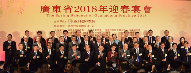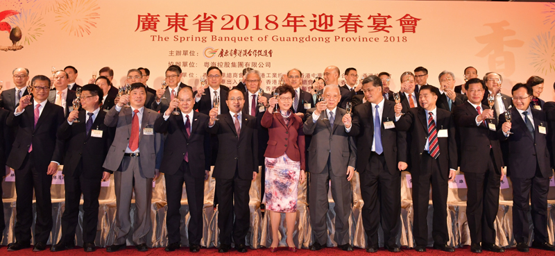 【香港商報網訊】記者馮煒強報道:廣東省粵港澳合作促進會昨晚在本港洲際酒店舉行「廣東省2018年迎春宴會」,出席嘉賓包括全國政協副主席董建華、行政長官林鄭月娥、中聯辦主任王志民、廣東省省長馬興瑞及兩地政府主要官員等。