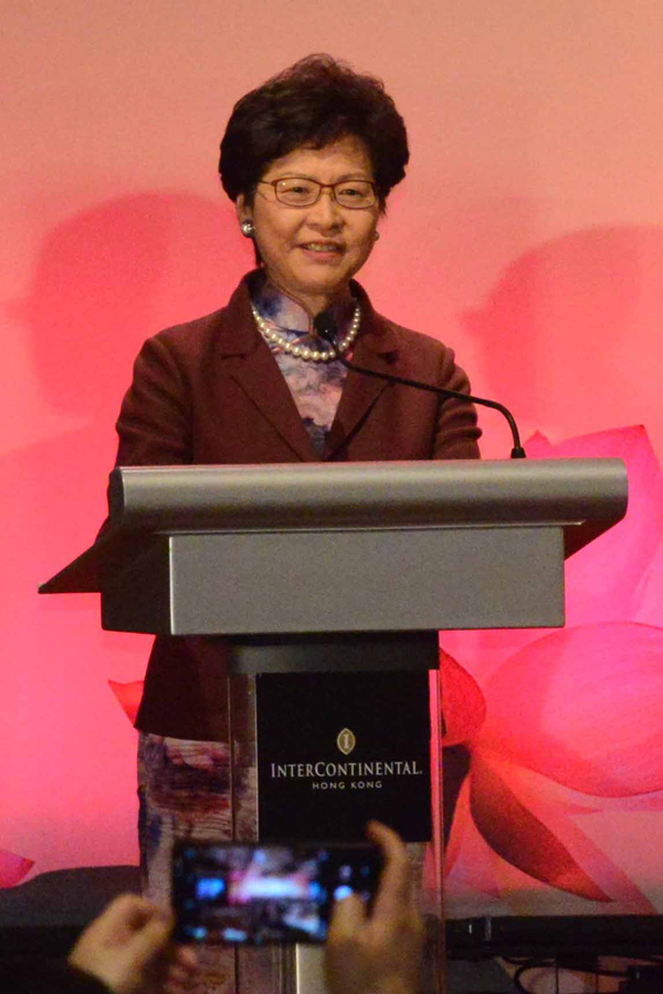 林鄭月娥在宴會上致辭表示,發展粵港澳大灣區已擁有「天時、地利、人和」,「天時」是指在剛過去的「兩會」,多位中央重要官員都提到了粵港澳大灣區的發展,可見國家對大灣區的重視程度;「地利」是指在未來12個月,包括港珠澳大橋、廣深港高鐵香港段,以及蓮塘口岸將相繼開通,往後大灣區內各城市的聯繫將會更緊密。