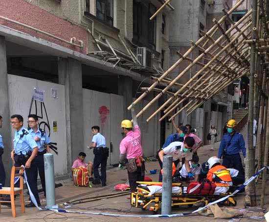 【香港商報网訊】記者馮仁樂報道:跑馬地發生1死1傷嚴重工業意外,2名搭棚工人昨午在一幢大廈外牆棚架作鞏固工程,期間棚架突然塌下,其中2名工人在約5米高墮地,1人重傷昏迷,送院搶救后不治;另1人則無性命危險。勞工處人員事后到場調查,相信死者身上有佩戴安全帶,但未知有否扣在穩固位置,正調查意外原因。
