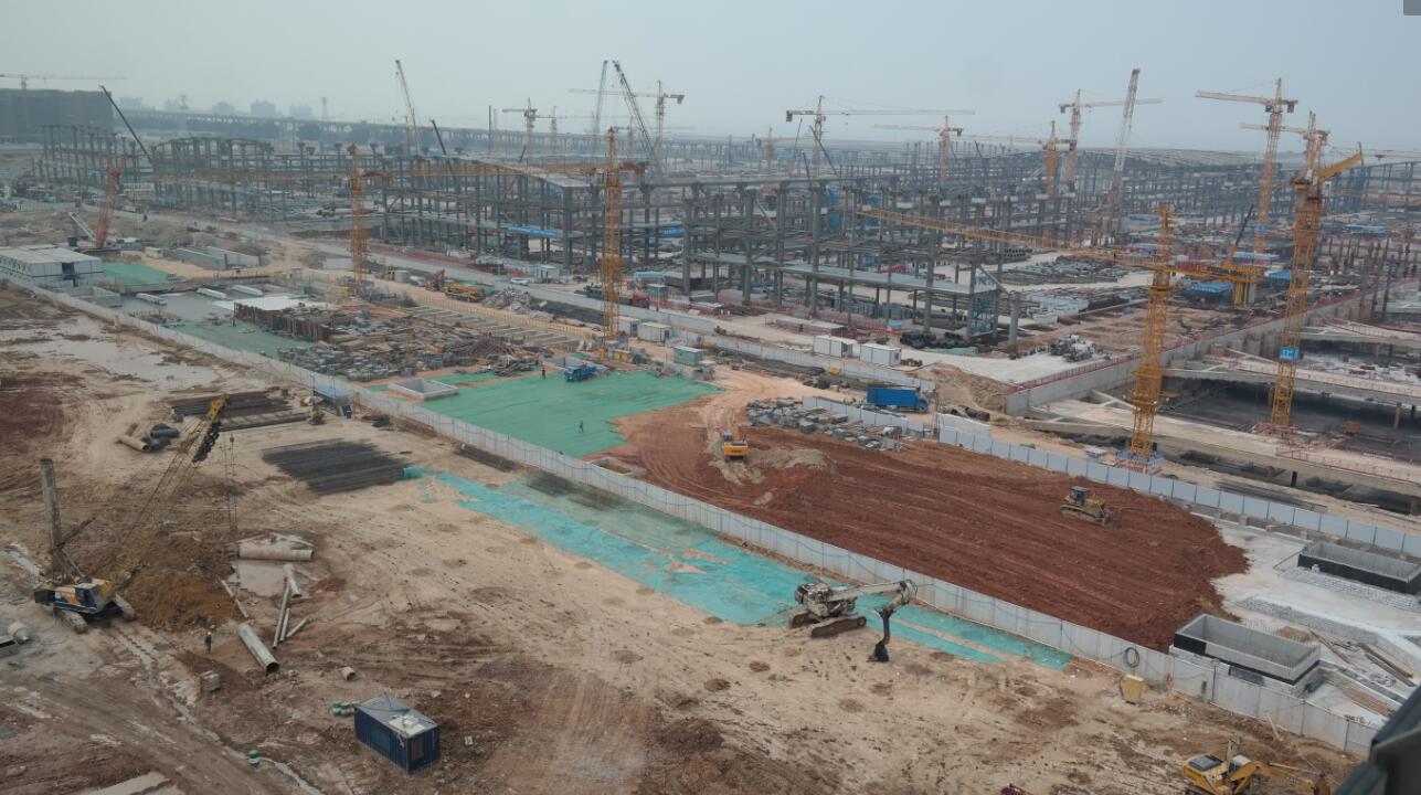 而昨天更让记者兴奋的是,前往空港新城项目建设工地的实地采访。登上约30米的高塔俯望过去,深圳新会展中心庞大的工地,尽收眼底,这里正在建设展出面积达到40万平米的新会展中心一期。一眼望过去,逾百个钢结构正在搭建之中,并已初具规模,不少记者都表示是第一次到工地来,非常震撼。据大空港新城官员介绍,会展中心一二期建成后,总的展出面积将达到50万平米,是全球展出面积最大的会展中心,超过德国汉诺威展馆面积,会展中心建成以后,深圳将借此跻身于中国会展业一线城市。会展中心全长1.7公里,20号和12号地铁线将经过这里,这里将分设会展中心南站和北站。