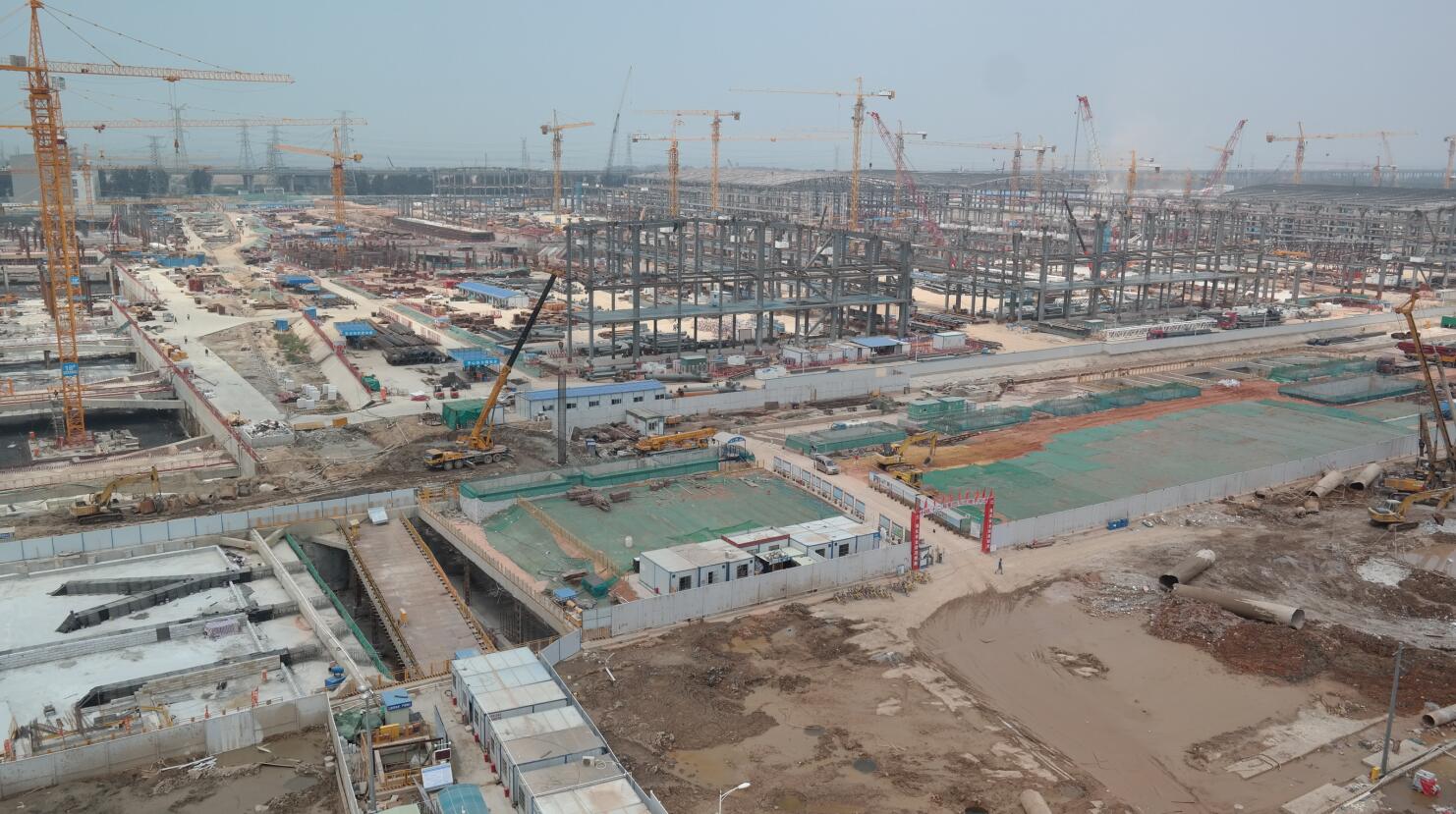項目相關負責人介紹,目前整個工地有接近1萬工人在加班加點施工,按照項目施工進度,項目將在4月底土建施工地下室全面封頂,8月底完成鋼結構封頂。