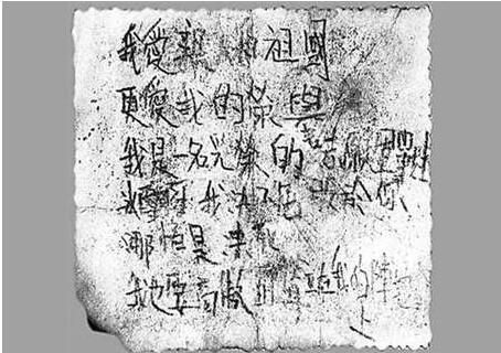 1952年的上甘岭,一位名叫黄继光的战士在烈焰和硝烟蔽日的日子里,一笔一划地写下:“男现在为了祖国人民需要站在光荣战斗最前面,为了全祖国家中人等幸福日子,男有决心在战斗中为人民服务,不立功不下战场。”后来的某一天,他张开双臂,迎着狂喷火舌的射孔一跃而起。档案上记载着,黄继光是位来自四川的农民。