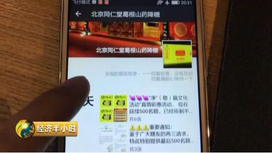 然而宣称效果如此之好的一款降糖药,同仁堂药店却买不到,只能在网上这个微信号上购买。北京同仁堂官方客服人员再三告诉记者:第一、北京同仁堂公司从未在“今日头条”上发布任何广告;第二、北京同仁堂公司生产的“同仁堂牌葛根山药胶囊”是保健品,不是药品,不具备治疗的功效。并一再提醒记者,这是个人行为,跟北京同仁堂没有任何关系,他们已经在今日头条刊登声明,没有通过这些微信号来推销同仁堂牌的这个保健品,奉劝大家不要被今日头条的广告欺骗。