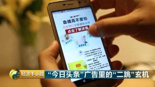 二跳,这是个新名词,但这种新手法,公司不仅随意发布违规广告挣取暴利,还蒙骗了消费者,精心设计中,也逃避了检查,推卸了责任,在调查中,北京同仁堂就告诉记者,“今日头条”上的二跳广告,让国家这块金字招牌苦不堪言,深受其害。