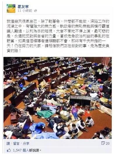 但很快,瞿友宁又被媒体曝光为“太阳花学运”头目陈为廷站台。