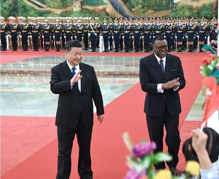 3月29日,国家主席习近平在北京人民大会堂同纳米比亚总统根哥布举行会谈。这是会谈前,习近平在人民大会堂北大厅为根哥布举行欢迎仪式。新华社记者 饶爱民 摄