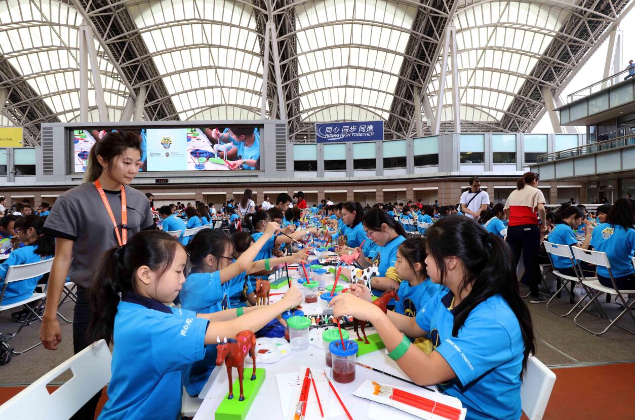 【香港商報网訊】記者葉佩瑜報道:賽馬會昨舉辦「同心同步同樂日」活動,首日全日入場人數超過1.5萬人次,其中重點活動是集合約1000名中小學生及其親友幫馬匹雕像塗色,活動成功刷新「最多人同時為雕像塗色」的健力士世界紀錄。馬匹雕像由即日起於沙田馬場展出兩日供觀賞。