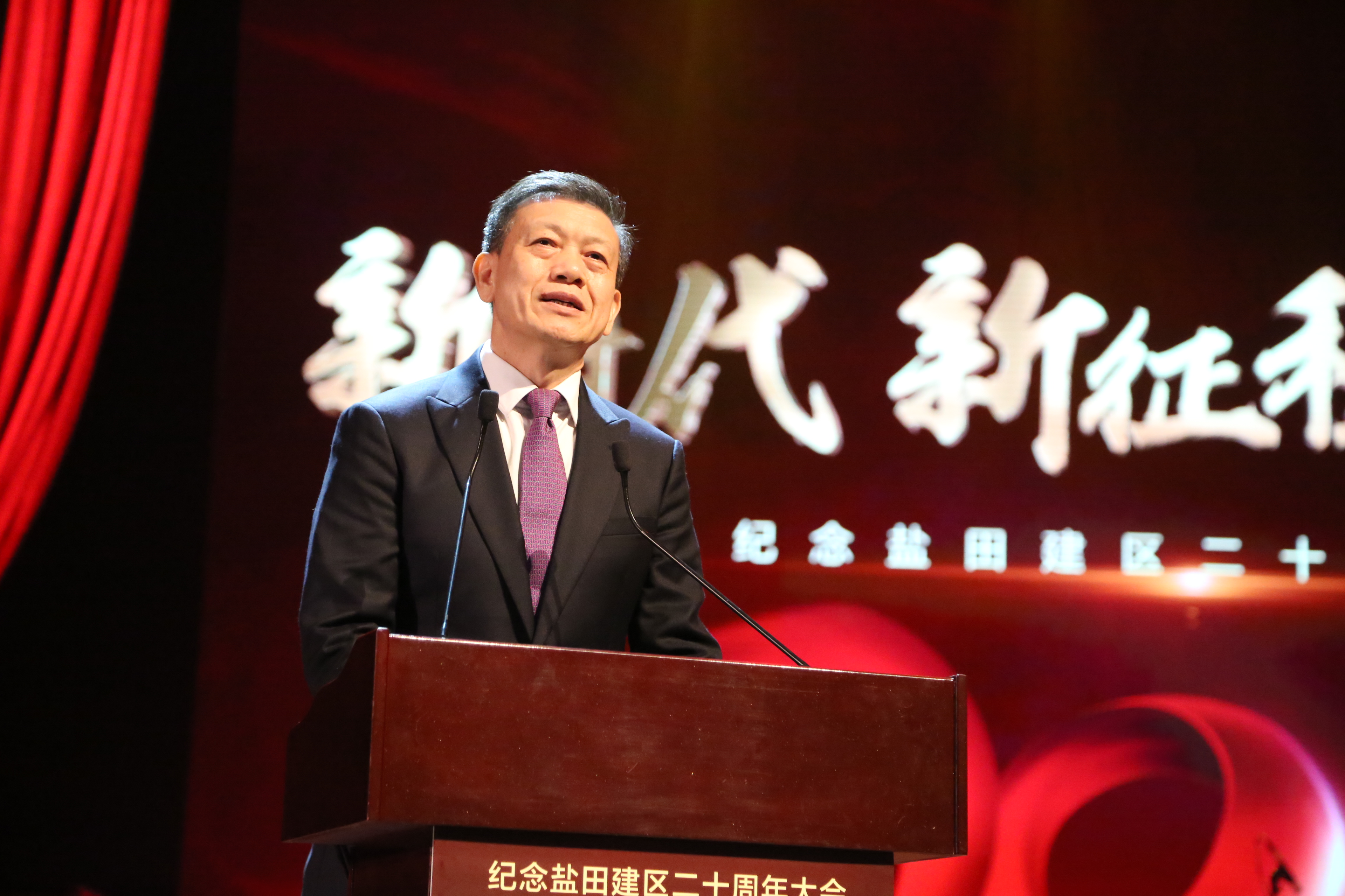 在當天舉行的紀念鹽田建區二十周年大會上,深圳市政協主席、原鹽田區委書記、鹽田區人大常委會主任戴北方,國務院參事、原鹽田區委書記、鹽田區人大常委會主任王京生,原深圳市人大常委會副主任、鹽田區委書記、鹽田區人大常委會主任陳治華,哈工大(深圳)黨委書記、原鹽田區委副書記、鹽田區長吳德林,原鹽田區政協主席張全方,原鹽田區政協主席李秀忠,原鹽田區政協主席鍾瑞興,鹽田區委書記杜玲,鹽田區人大常委會主任梁景海,鹽田區政協主席武威等出席大會,並與鹽田區老領導、社會各界人士、轄區群眾代表共同見證鹽田建區20周年。珠海市委書記、原鹽田區委書記郭永航為大會發來賀信。