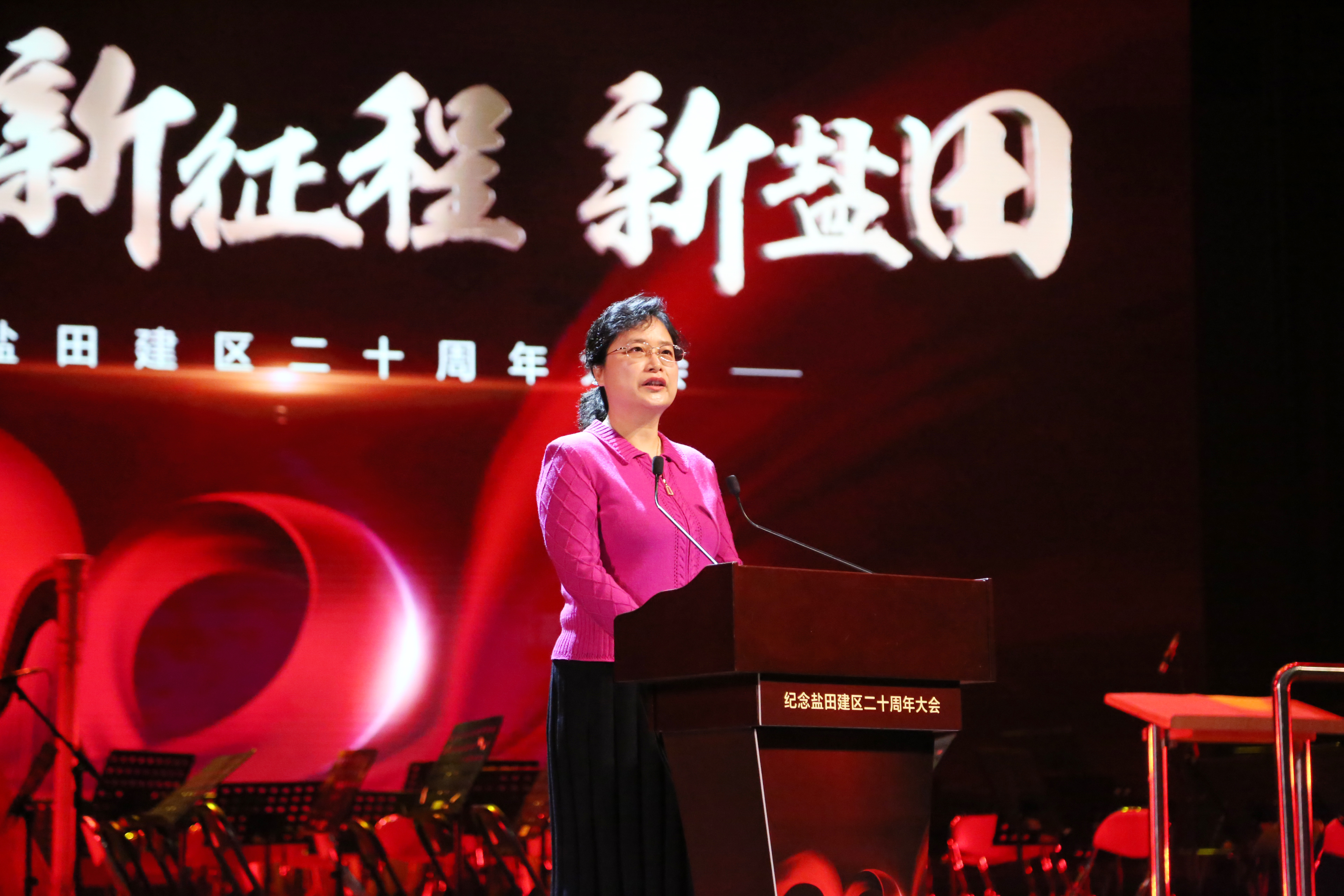 鹽田區委書記杜玲在大會上致辭稱,今日之鹽田,經濟發展的規模、質量、效益顯著增強,城區建設的宜居度、便利度、均衡度持續改善,人民生活的獲得感、幸福感、安全感大幅提升,昔日的邊陲小鎮,正在迅速崛起為一座產業特色鮮明、經濟頗具規模、社會安定祥和、居民安居樂業、生態環境優美的現代化國際化先進濱海城區。