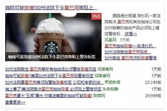 “星巴克咖啡含致癌物質”在各大社交平台瘋狂刷屏了。