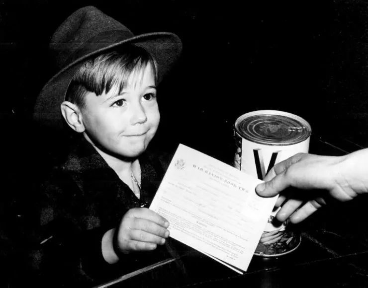 |二戰期間,一個美國孩童想要購買一罐V8牌濃縮蔬菜汁,當時購買果蔬汁需要出示定量配給簿