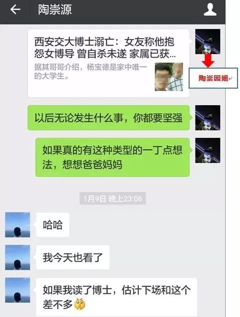 西安藥理學博士楊寶德的悲劇還未被忘記,巧的是,陶與姐姐的聊天紀錄也提到過這件事,兩個多月後,他做了與楊相同的選擇。