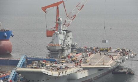 报道称,最近的网上图片显示,航母脚手架已全部拆除。这艘航母于2017年4月26日下水。