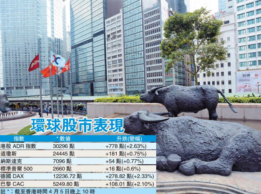 面對中方大力反擊,美國隨之表示願意與中國商量解決辦法,亞洲股市從兩個月低位反彈,中國內地、香港和台灣則逢清明節假期休市。隔晚三大美股造好,標普500指數收漲1.16%,納斯達克指數收升1.45%。