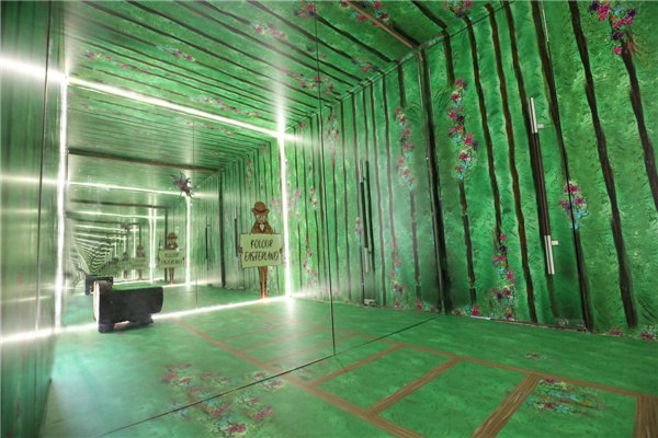 幸福感覺隨荃灣千色匯,延續至元朗千色匯。繪本主角來到由兩塊接近2.5米闊乘2.5米高大鏡子組成的「仙境森林鏡房」,油油綠草跟火車路軌伸延的景象,猶如無窮無盡的幸福就在眼前,彷彿告訴大家只要勇敢向前走,沿途必定會有好風光。
