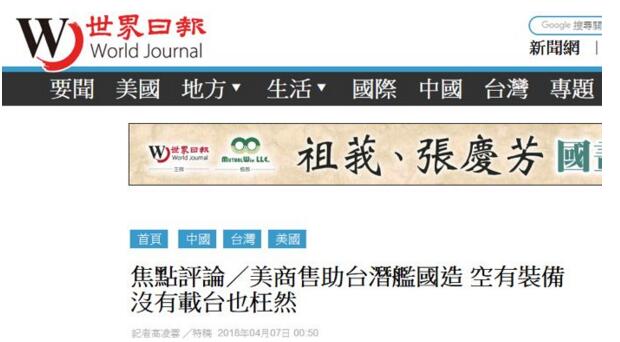 但是,台湾《联合报》及其报系下属驻美媒体《世界日报》7日共同发出一则“大独家”——美国对台湾出售潜艇零部件的限制出现松动!美方一位熟悉台海军事的人士6日向该报记者透露,美方近日将以“商售管道”,对台湾输出“潜舰国造”所需技术协助。