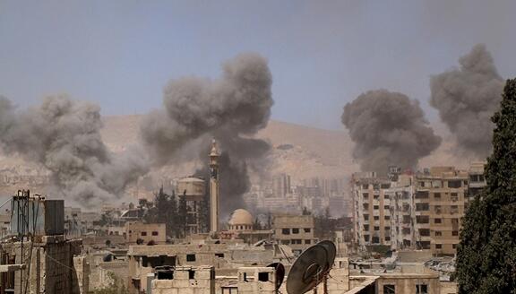 4月7日,东古塔地区遭阿萨德政府空袭(视觉中国)