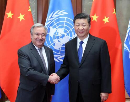 新华社北京4月8日电,国家主席习近平8日在人民大会堂会见联合国秘书长古特雷斯。