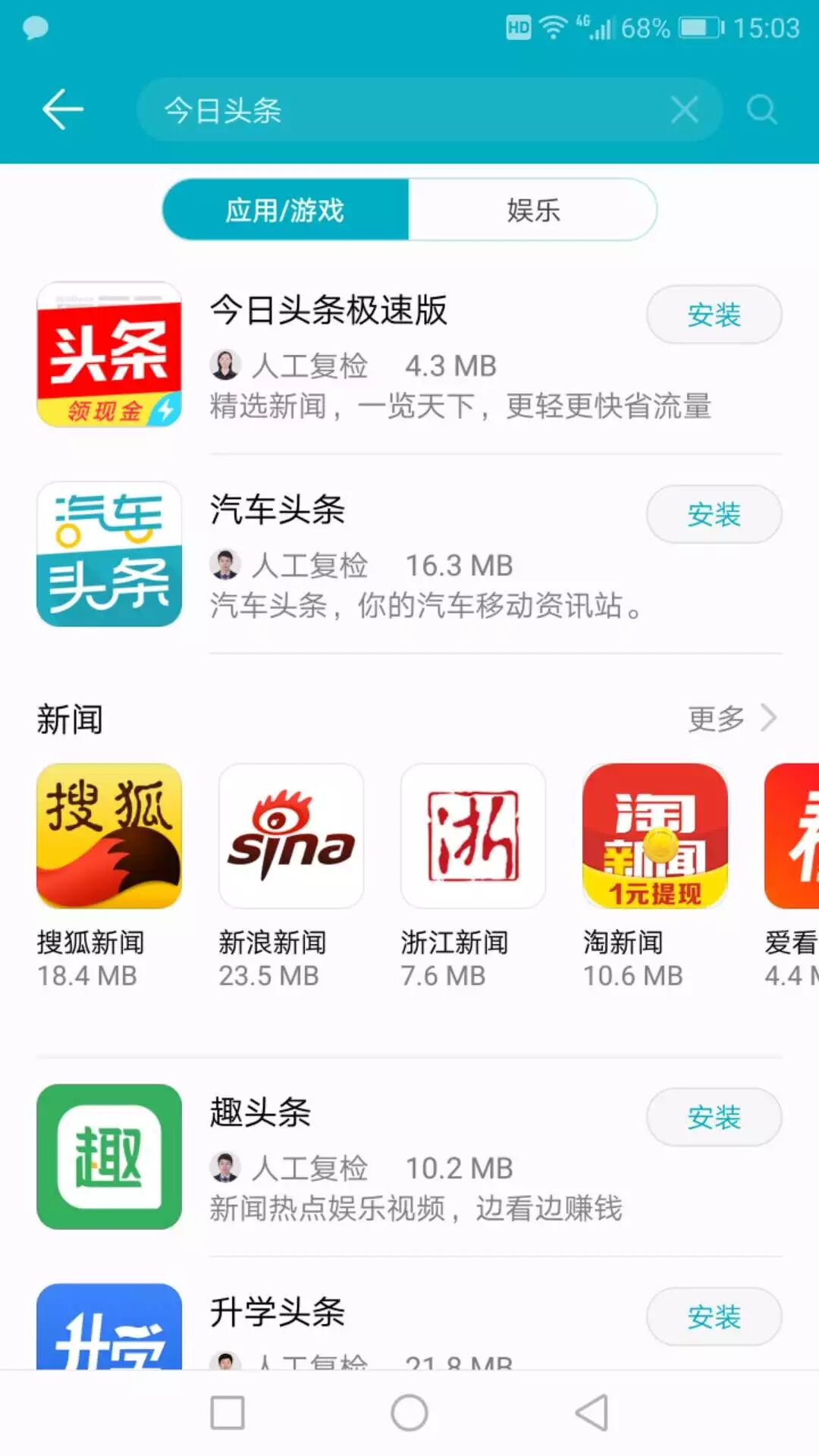 据小编查询,15时起,华为应用商店已经无法搜索下载“今日头条”等这4款APP。