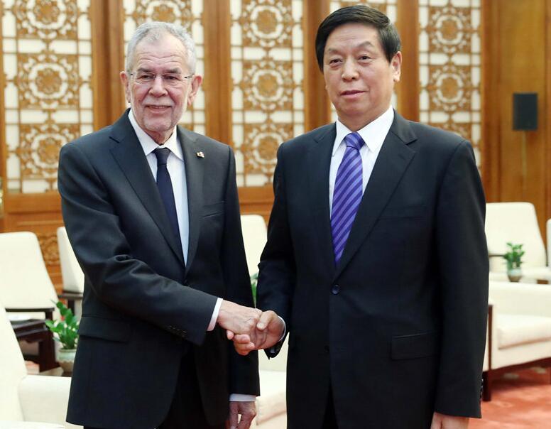 在会见范德贝伦时,栗战书表示,昨天习近平主席同总统先生举行会谈,中奥建立友好战略伙伴关系。今年是中国改革开放40周年,我们坚定不移坚持经济全球化,维护贸易自由化和多边贸易体制,贸易保护主义是没有出路的。中方愿同奥方一道,落实好两国元首达成的重要共识,增进政治互信,加强对话交流,理解和照顾彼此核心利益和重大关切,深化包括“一带一路”建设在内的各领域合作,推动夯实两国友好的社会基础,为新时代两国关系发展做出积极贡献。
